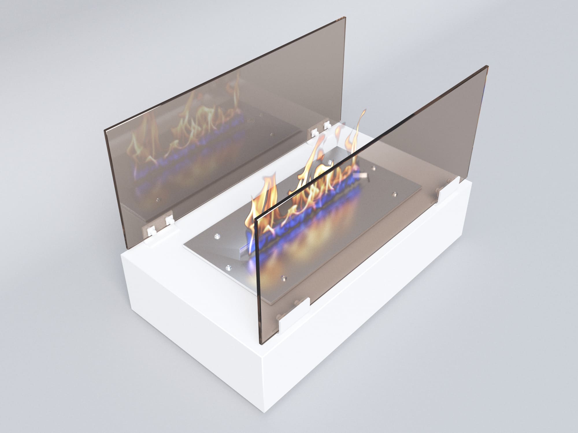 Корпус биокамина изготавливается из металла, топливный блок, выполненный из высококачественной нержавеющей стали. Всё, что нужно, для его работы — качественное биотопливо от нашей компании. Данная модель имеет экономичный расход топлива. Размер биокамина 350х220х200 мм (высота указана с установленными стеклами). При горении, камин не выделяет копоти и гари.