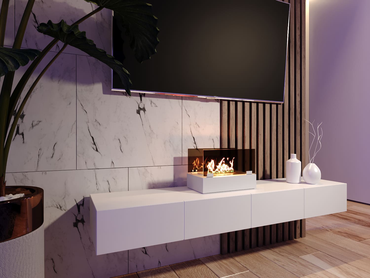 Небольшой домашний камин, можно установить на любую поверхность, он не требует дымохода. Линия огня данного камина 200 мм.