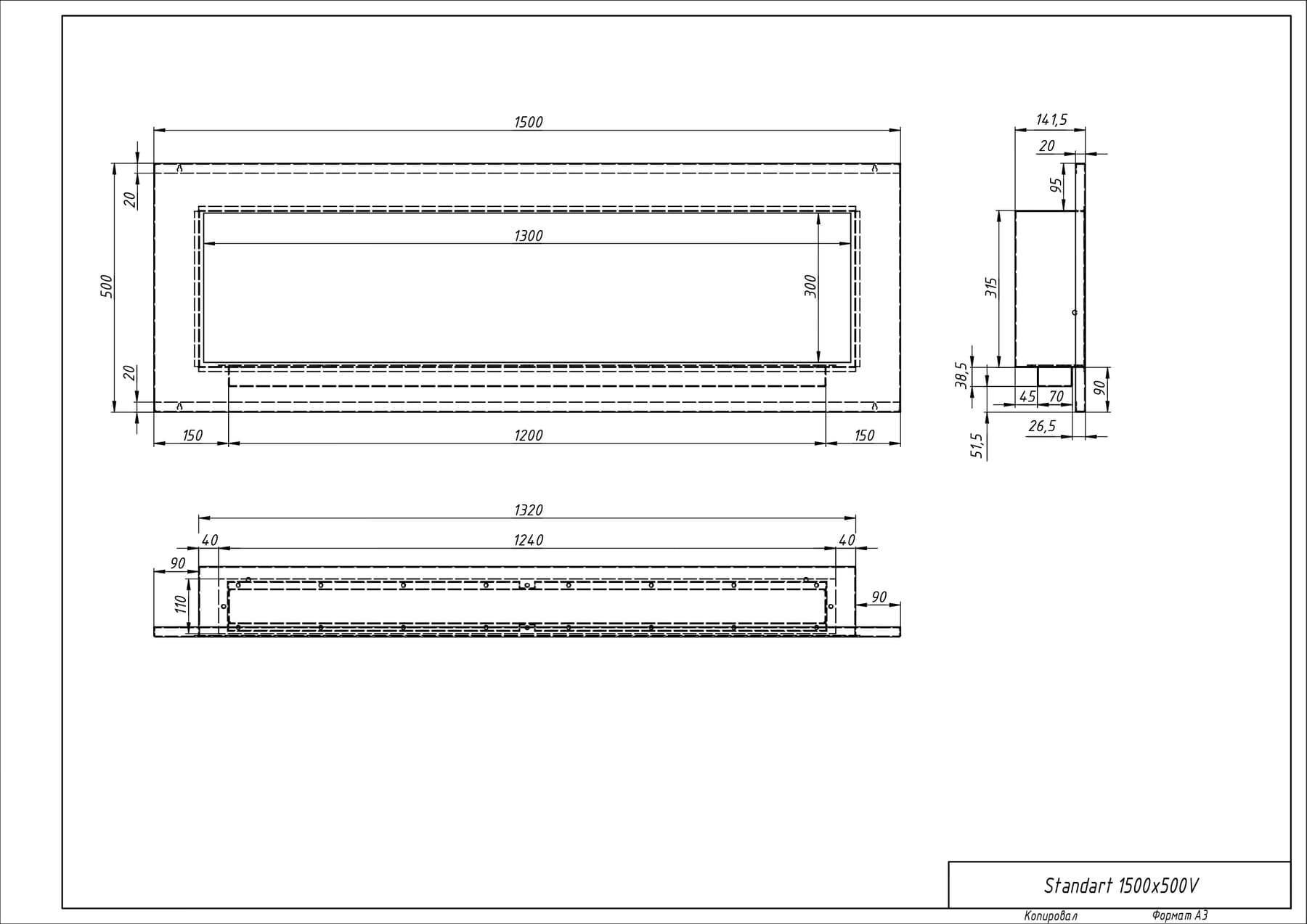 Встраиваемый биокамин «Модерн 1500V» изготовлен из стали и нержавеющей стали, окрашен термостойкой порошковой краской.