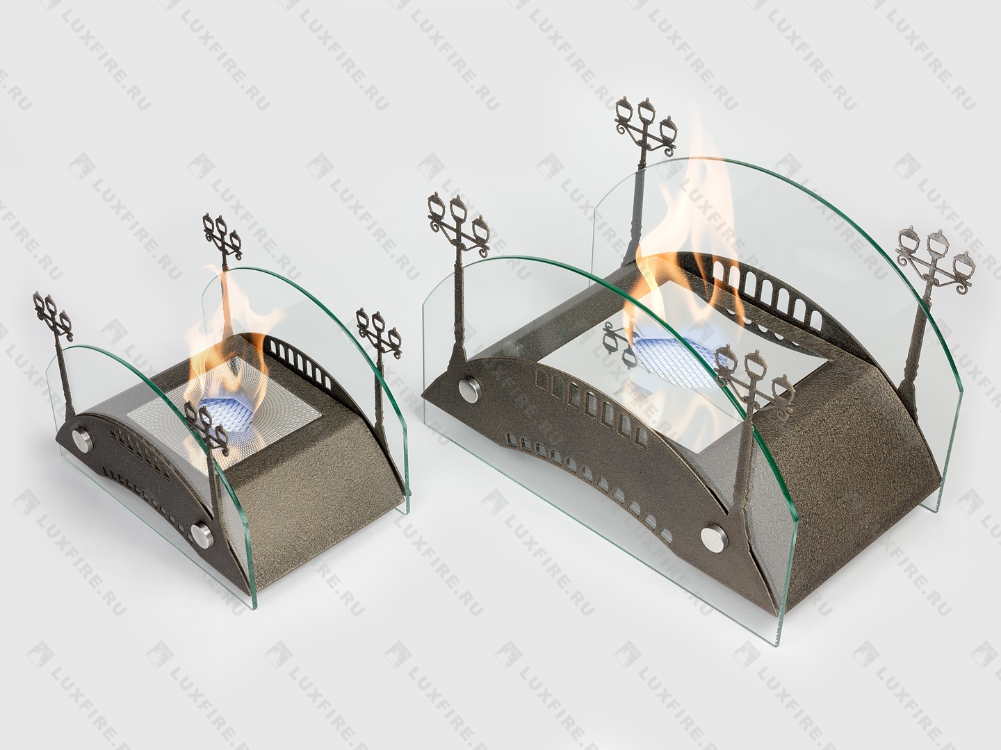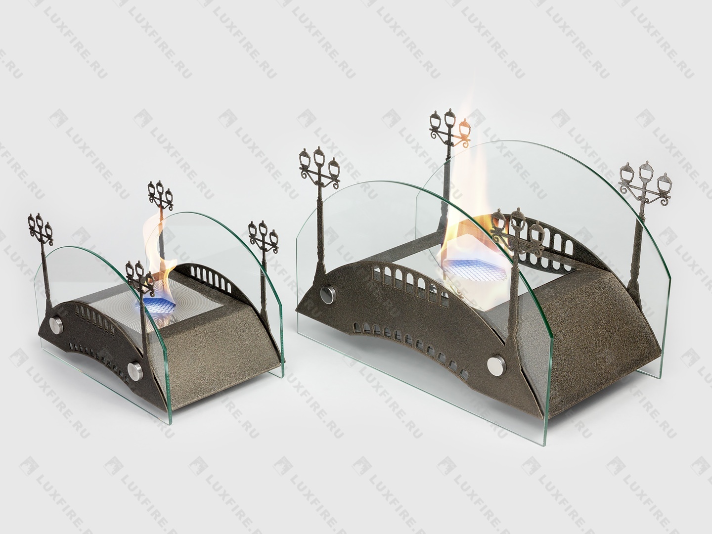 Представляет собой биокамин, который создан по мотивам мостов дореволюционной России середины ХIX-начала XX века и состоит из металлического корпуса с топливным блоком Lux Fire 150-1 огражденным с двух сторон скругленными защитными стеклами на дистанционных держателях и декоративными металлическими накладками в виде «Фонарей»