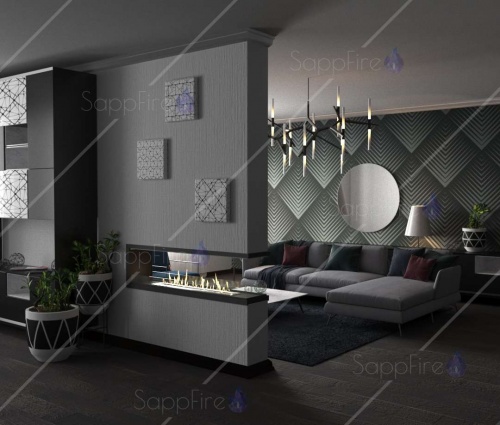 Торцевой сквозной очаг 800 SappFire – отличное решение для оформления интерьера вашей квартиры.Биокамин приобрел более пропорциональные габариты, широкую линию единого огня.