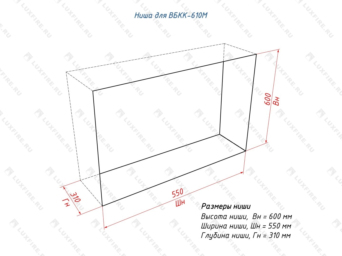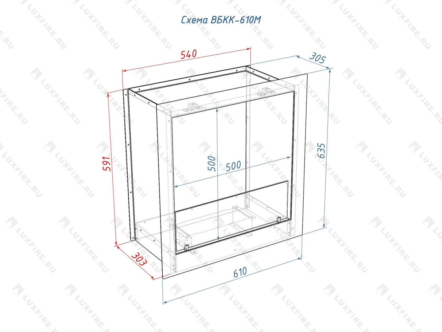 Встроенный биокамин Lux Fire Кабинет 610 М