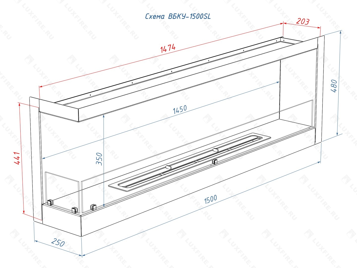 Встроенный биокамин Lux Fire Угловой 1500 SL (левый угол)