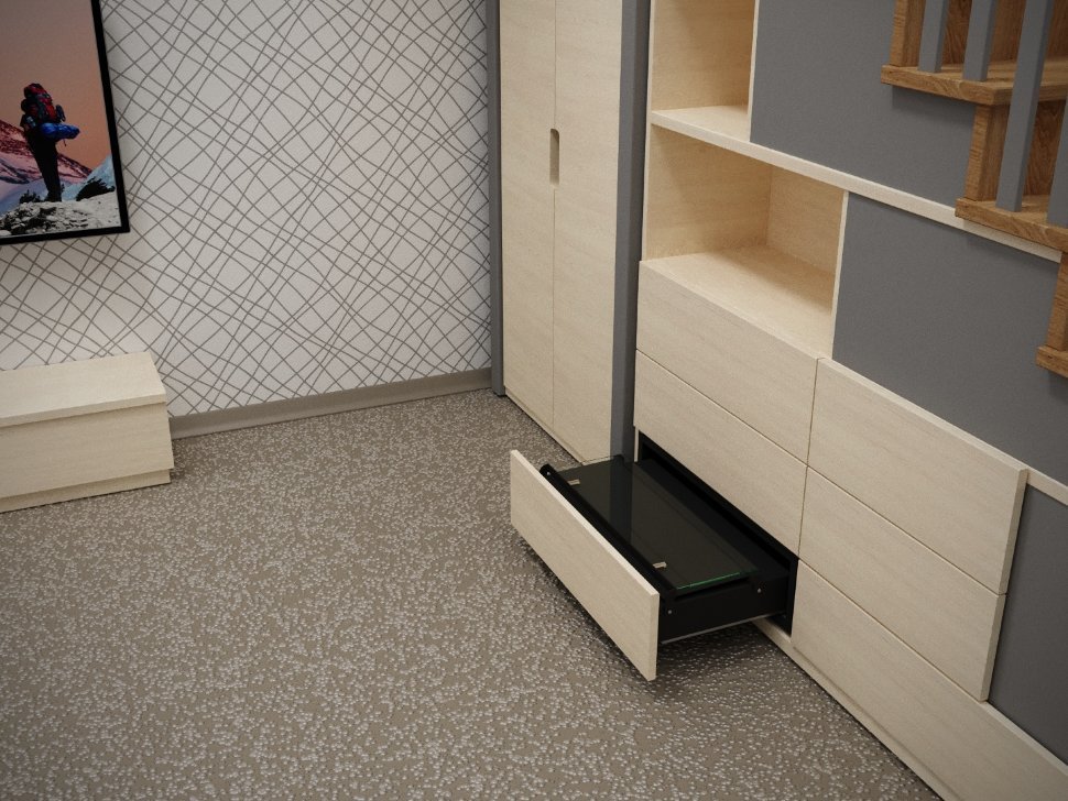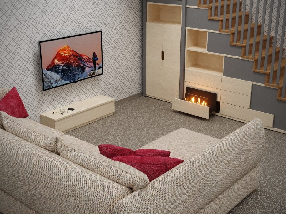 Представляет собой сборную выдвижную металлическую конструкцию (внешний корпус + механизм трансформации и выдвижной элемент с топливным блоком ), способную создать полуоткрытое безопасное пространство для огня ограниченную складывающимся защитным экраном (закаленным стеклом) и металлическим отражателем.Предназначен для встраивания в межкомнатные перегородки из ГКЛ, мебель из МДФ, ЛДСП, конструкций из кирпича, пеноблоков, бетона.