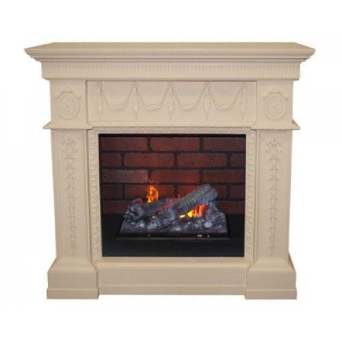 Портал выполнен из МДФ, оформленный качественным шпоном. Украшает же его изящная лепнина. Узор дизайнерами проработан очень тщательно, что придает изделию больше изящества. При этом сам камин сложно назвать вычурным. Цвет «Слоновая кость» придает изделию неброский и благородный вид. Компактные же размеры каминокомплекта позволяют ему отлично вписаться в помещения различной площади.