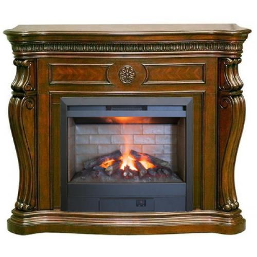 Портал каминокомплекта сразу же привлекает своими мощными классическими формами. Стенки, обрамляющие топку, по углам оформлены изящными резными элементами, оформленными под ножки старинной мебели эпохи барокко. Они выступают опорами для мощной каминной крышки, отличающейся изящными плавными формами. Карниз каминной крышки оформлен тонкой полоской изящной резьбы. В оформлении верхней панели над очагом использована изящная резная розетка, выполненная в форме цветка. Установка всей представленной конструкции осуществляется на невысокое основание. Оно также имеет изогнутую форму, как и каминная крышка.