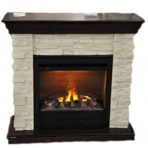 При изготовлении облицовки каминокомплекта использован искусственный камень и МДФ. Основа портала выполнена из МДФ, который за счет своей плотной структуры обеспечивает оптимальную жесткость конструкции. Также из МДФ выполнены и декоративные элементы. Дополнительно они покрываются натуральным шпоном, имитирующим фактуру и цвет античного дуба. Темный цвет шпона отлично контрастирует с белой расцветкой искусственного камня. Им покрыта практически вся площадь портала. искусственный камень имитирует пиленый скальник. Такое сочетание материалов выглядит очень уместно в помещении и однозначно привлечет внимание ваших гостей. Очаг, встроенный в портал, выполнен из прочной стали. Покрывается она слоем порошковой краски черного цвета, которая обеспечивает надежную защиту изделия от случайных повреждений.